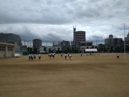 野球部は、ノックを受けていました。陸上部は、次のメニューの準備をしていました。