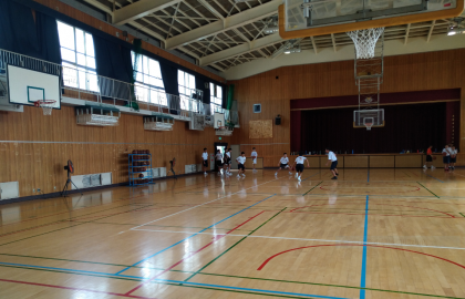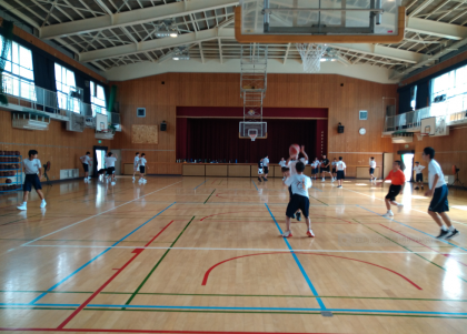 午後の体育館では、バスケットボール部のみなさんが、練習に取り組んでいました!とても上手にボールを扱っています!この調子で、がんばってください!