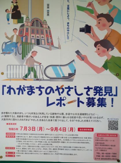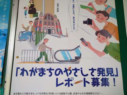 歩き慣れた大阪のまち、いつも何気なく利用している建物や公園、歩道や公共交通機関など、よ〜く観察をすると高齢者や障がいのある方々が安全、快適に暮らせる配慮や思いやりがたくさん見つかるのではないでしょうか。