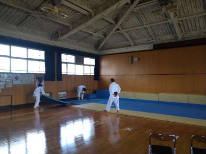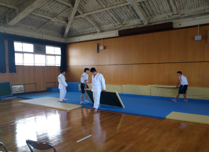 格技室では柔道部の練習が行われていました。きれいなフロアーにマットを引き、これから練習が始まります!次の大会に向け、頑張ってください!