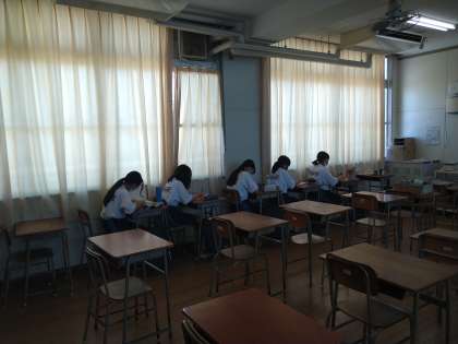 美術部の活動が教室で行われていました。部員のみなさんが集中して取り組んでいる姿が印象的でした。写真でお見せできませんが、みんなとても上手に描いていました!