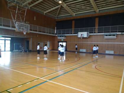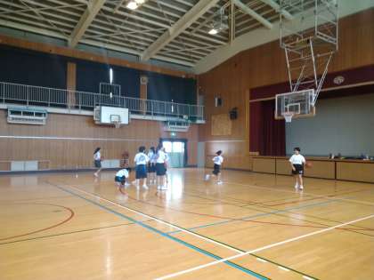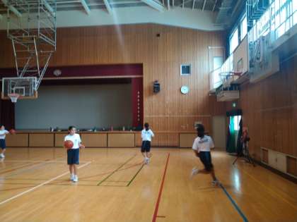 体育館では、バスケットボール部が練習に励んでいました。基礎、基本を大切にし、がんばって取り組んでいました!