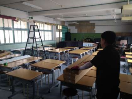 本日、音楽室の照明工事が行われました。とても明るくなりました。2学期、楽しみにしてください!