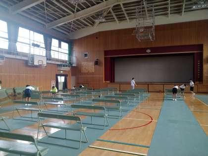 明日のSNS講座と保護者説明会の会場設営を女子バスケットボール部のみなさんが、お手伝いをしてくれました。とても丁寧にテキパキと設営をしてくれました。ありがとうございました。