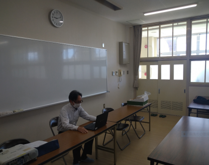 2学期の始業式の始まりは、新しい国語の先生〈1年生)の着任式が行われました。続いて、表彰伝達が行われました。次に、学校長式辞が述べられました。