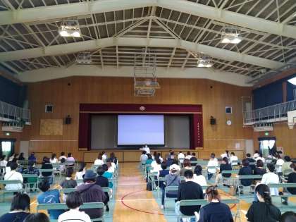 3限後、新入生保護者説明会・学校選択制説明会が行われました。学校長より、入学案内が行われました。教育目標である、「安心安全な学校」・「学力向上」に沿ったお話がございました。大阪市総合的読解力育成カリキュラム研究指定校や文章読解・作成能力検定受検についてのお話がありました。あわせて、学校生活DVDを観覧いただきました。