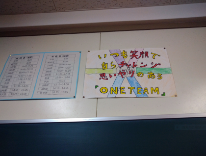 「いつも笑顔で 自らチャレンジ 思いやりのある ONE TEAM」いいポスターですね!