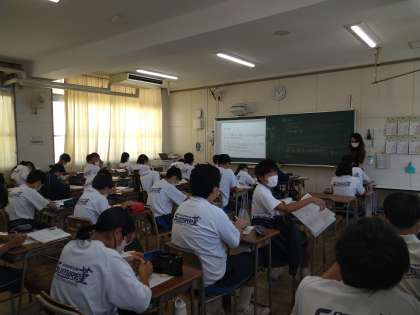 3年生の社会科の授業風景です。チャレンジの過去問題に取り組んでいました!先生の説明に耳をしっかりと傾け、授業に取り組んでいました!がんばっています!!