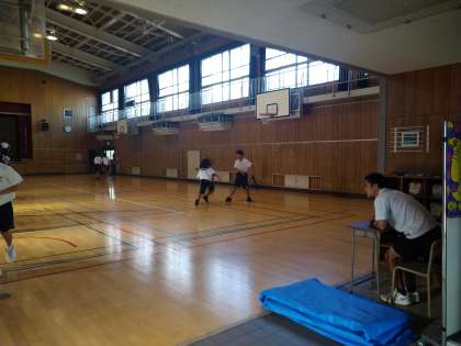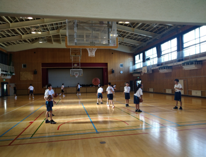 本日、体育館で、バスケットボール部の朝練が行われていました。