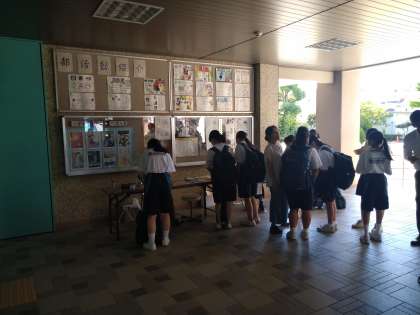 本日、登校時に漢検の申し込みが行われました。写真は、漢検の申し込み風景です。60名以上の申し込みがありました。「合格」目指して頑張ってください!