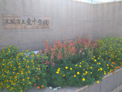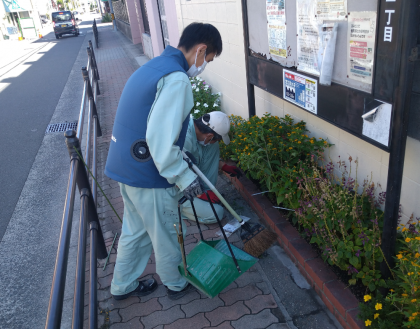 今日も管理作業員の方々が、学校の美化・整備のために尽力してくださいました。いつもありがとうございます。正門横の花壇の手入れもしていただきました。