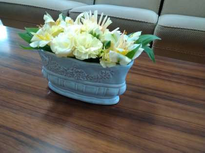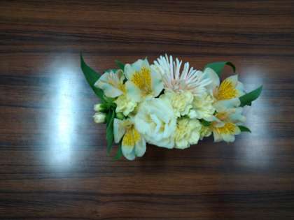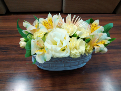 今週のお花を活けていただきました。毎週、すてきなお花、ありがとうございます!とても明るく華やかな色あいです。