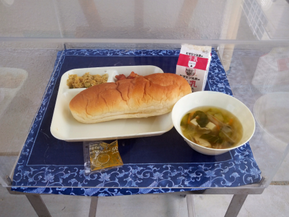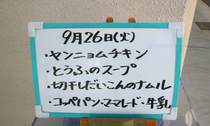 今日の給食は、ヤンニョムチキン、とうふのスープ、切干しだいこんのナムル、コッペパン、マーマレード、牛乳でした。