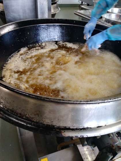 今日の給食では、ヤンニョムチキンが登場しました。ヤンニョムチキンは、油で揚げた鶏肉に、ヤンニョム(合わせ調味料)をからめた料理のことです。