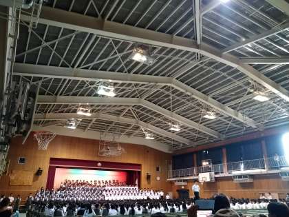 舞台の部は、吹奏楽部、茶道部、1年生代表、2年生代表、3年生国語、放送部、最後に3年生全体合唱が行われました。写真のみのお伝えとなり、申し訳ございません。