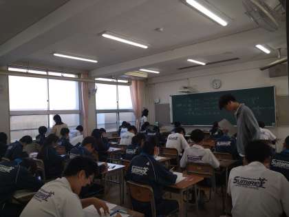 2年生も頑張っています!2時間目は数学です。教科担当の先生方が、質問を受けています!