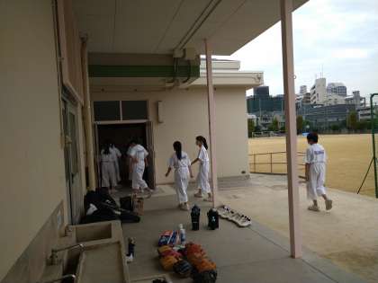 格技室は剣道部のあと、少林寺拳法部が練習を行います。ランニングを終え、今から、格技室での練習が始まります。