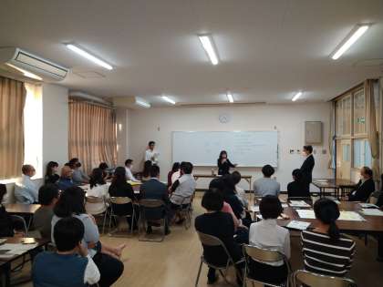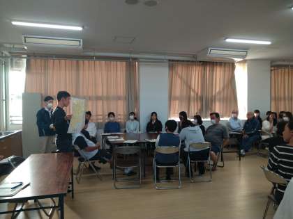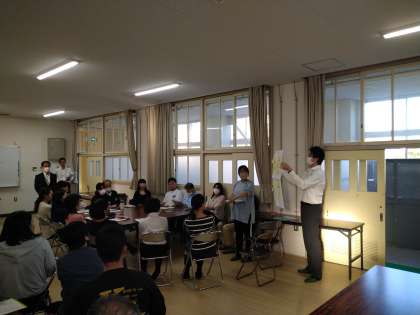 話し合いのあとは、それぞれの班で出た意見をまとめ、全体で意見交流を行いました。会の結びには、教育センターより、宮田先生に来校していただき、ご助言をいただきました。