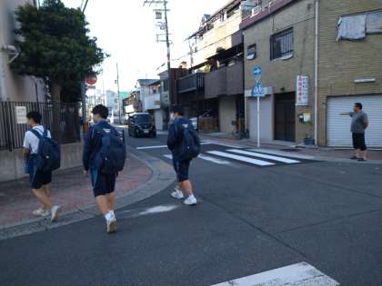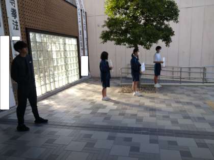 今週は、朝8時から生徒会立候補のみなさんが、選挙活動の一環として、「朝のあいさつ運動」に参加しております。今日は、1年生の学年集会がありましたので、2名少なく、3名で活動をしました。お互いに気持ちいいあいさつを交わし、1日をスタートしましょう!