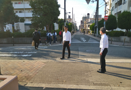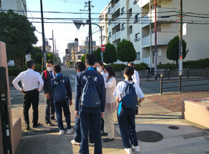 今日もキャリア教育支援センターで、キャリア教育実習を行います。いい天気に恵まれました。今朝も、校長先生、副校長先生に見守られ、元気よく出発しました!がんばってください!