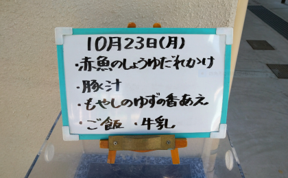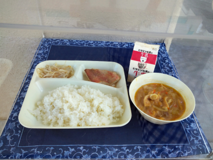 本日の給食メニューは、赤魚のしょうゆだれかけ、豚汁、もやしのゆずの香あえ、ごはん、牛乳でした。