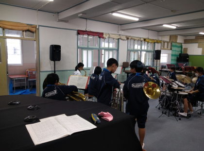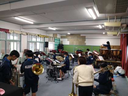 吹奏楽部が一所懸命に練習に取り組んでいます。