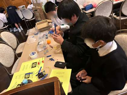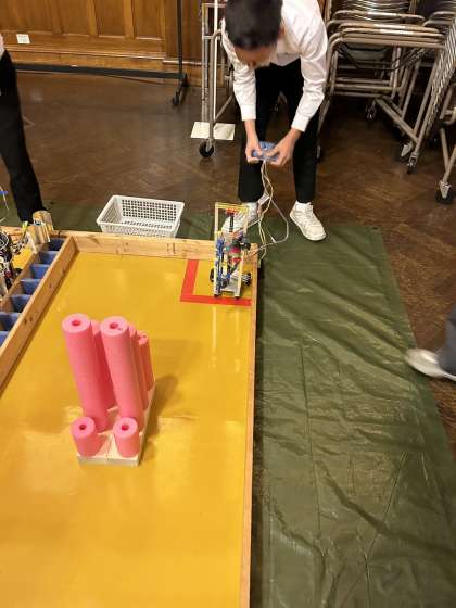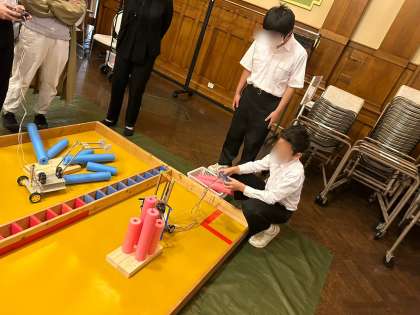 技術工作部方、ロボコンのデモンストレーションを行っています。真剣な眼差しで、がんばっています!