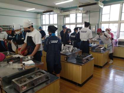 2年7組の調理実習の様子です。クレープを作りました!班のみんなで協力して、調理しました!