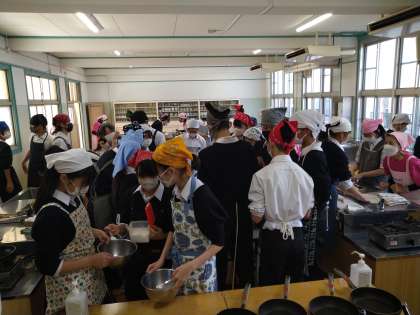 本日3・4限目に調理実習が行われました。今日は2年4組の様子です。