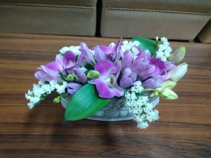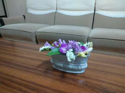 今週のお花も綺麗な花です。すみれ色の可憐なお花を活けていただきました。毎週、ありがとうございます。