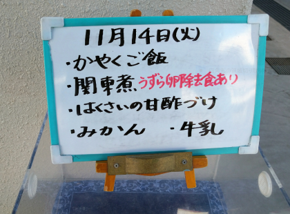 今日の給食には、鶏肉、うずら卵、ごぼう平天、じゃがいも、こんにゃく、あつあげ、だいこん、にんじんが入っています。