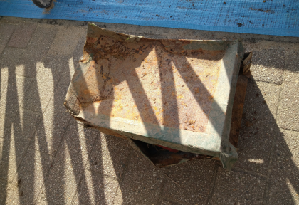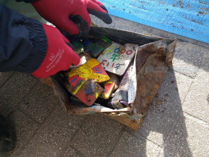 現在、プール工事が行われています。更衣室のあとは、プールを今、工事中です。本日、管理作業員の方々が、工事の方に現状をお聞きすると、なんと、「タイムカプセル」が出てきたようです。おそらく、2000年卒業の方のものではないでしょうか?歴史を感じますね。