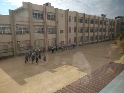 本日は、中庭で陸上競技部が練習に取り組んでいました。小学生に頑張っている姿を見せてくれました。
