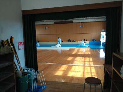 格技室では、少林寺拳法部が前半、柔道部が後半の練習でした。