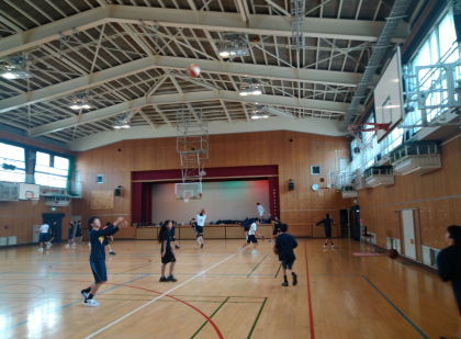 体育館は、校下3小学校フェスタのあと、バスケットボール部の練習が始まりました。