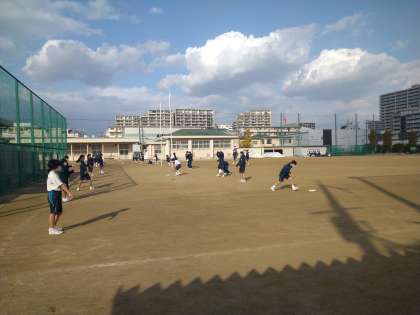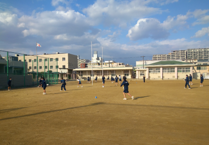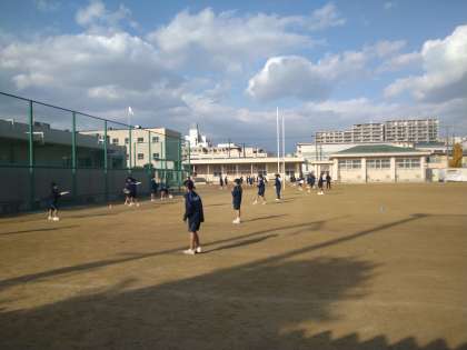 グラウンドでは、1年生の女子がフライングディスクに取り組んでいました。とても楽しそうに取り組んでいました。寒さに負けず、がんばっています!
