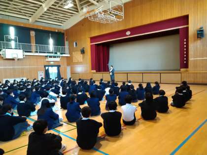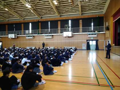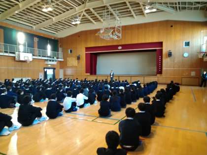 本日、定例の1年生学年集会が行われました。期末テストは終わりましたが、気を抜かず学習含め、がんばって取り組みましょう。