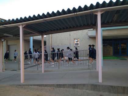 場所を分け合いながら、みんな頑張っています!大きな声であいさつしてくれる部活動が多く、気持ちがいいですね!