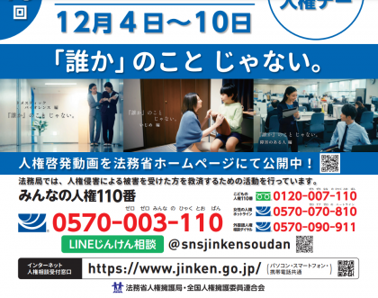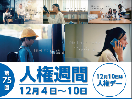 12月4日(月)から12月10日(日)までの1週間は、人権週間です。今年で75回目を迎えます。12月10日は、「人権デー(Human Rights Day)」と定められています。