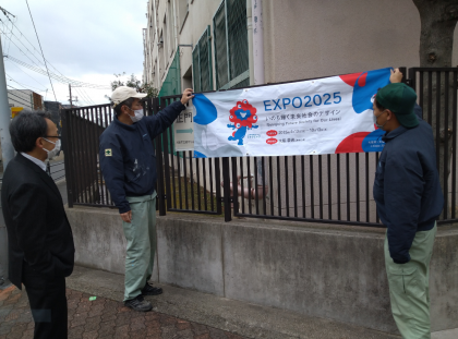 大阪府・大阪市万博推進局では、2025年大阪・関西万博の開幕500日前にを機に、万博に対する関心度を高めていただくことを目的として、大阪・関西万博をPRする横断幕を作成しました。