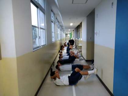 水泳部は、廊下で筋トレをしていました。こちらも一所懸命に取り組んでいました!