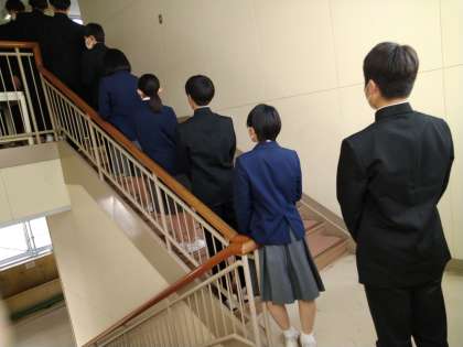 本日、5・6限目に、3年生は進路用写真撮影を行いました。正装した姿を、きちんと写真に収めました。写真は、撮影を待っている様子です。きちんと静かに待つことができていました。本日、撮影ができなかった方は、12月12日(火)に撮影をおこないますので、ご準備ください。
