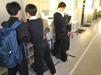 放課後の廊下でのワンシーンです。パソコンを開いて学習をしていました!いつでも、どこでも、頑張っていますね!