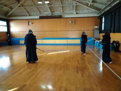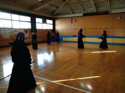 格技室では、剣道部の練習が始まっていました。緊張感漂う練習の様子です。指導員の方や卒業生の方も駆けつけていただき、子どもたちに心・技・体の大切さを教えてくださっています。ありがとうございます。