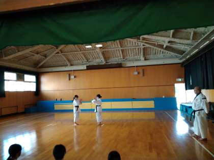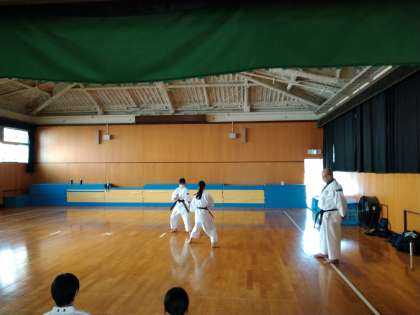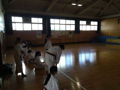 剣道部の活動後、少林寺拳法部が活動しています。張り詰めた空間の中、機敏な動きが見られました!きちんとあいさつもしてくれ、とても清々しい気持ちになりました。ありがとうございます。