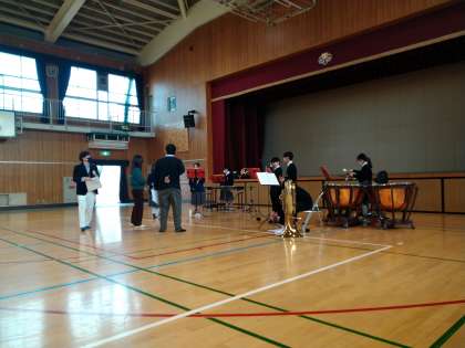 本日、体育館ではこれから吹奏楽部が練習を行います。共有しながら、活動スペースを使用しております。吹奏楽部のみなさん、がんばってください!