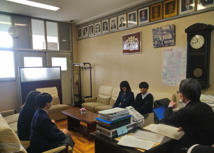 本日の放課後に城東区長様の学校訪問が行われます。昼休み、事前に学校長より、生徒会のみなさんに対して、事前の面談を行いました。校長先生から、たくさんのことを学び、本番を迎えます!