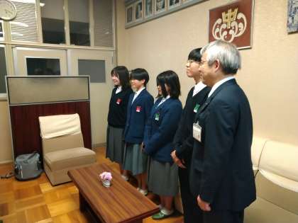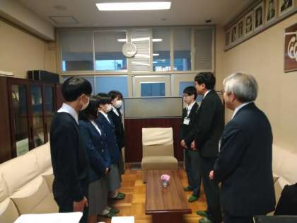 本日の放課後、城東区長様をはじめ3名の方々に学校訪問をしていただきました。1月に開催されます「いじめ撲滅サミット」に向けて、生徒会の4名のみなさんとの面談でした。