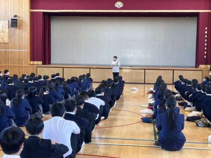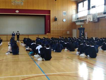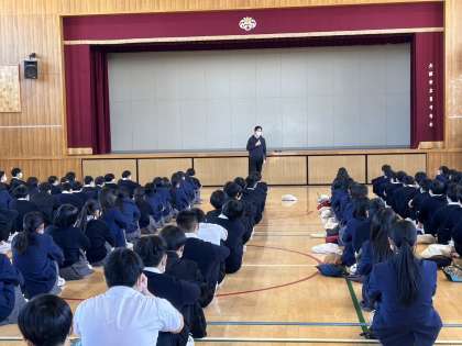 4限目、3年生の学年集会が体育館で行われました。学習面、健康面、生活面のお話でしたが、3年生は来年、受験を控えています。進路の大切なお話もありました。この冬を制する者は、受験を制します。充実した冬休みをお過ごしください。