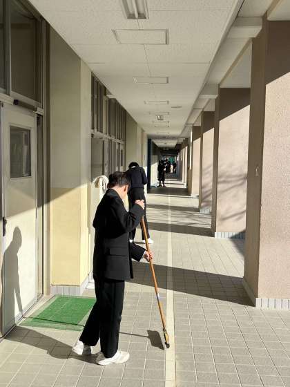 職員室前、「ありがとうございます!」